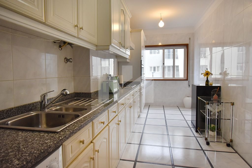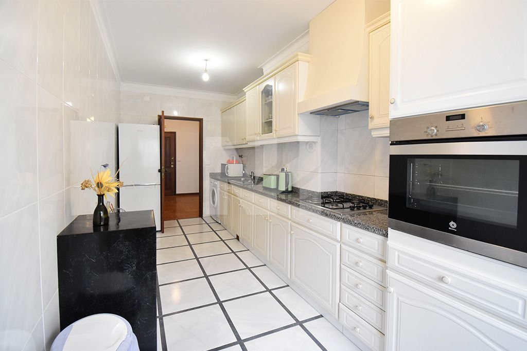 Arrendamento T3 ao nível do segundo piso, prédio está dotado de elevador, sendo que este apartamento é arrendado com cozinha equipada com Forno, Placa a gás, Exaustor, Micro-ondas, Combinado, Máquina de Lavar Roupa e Televisão.