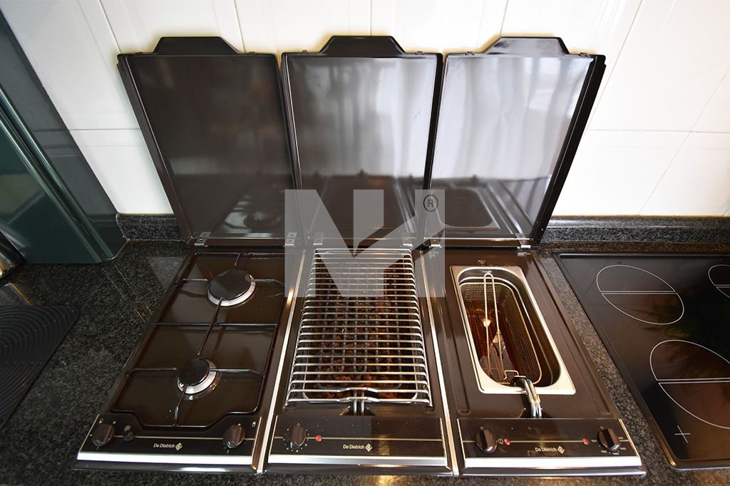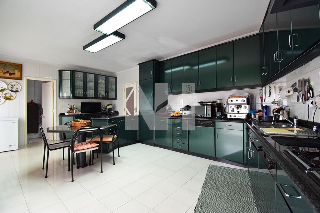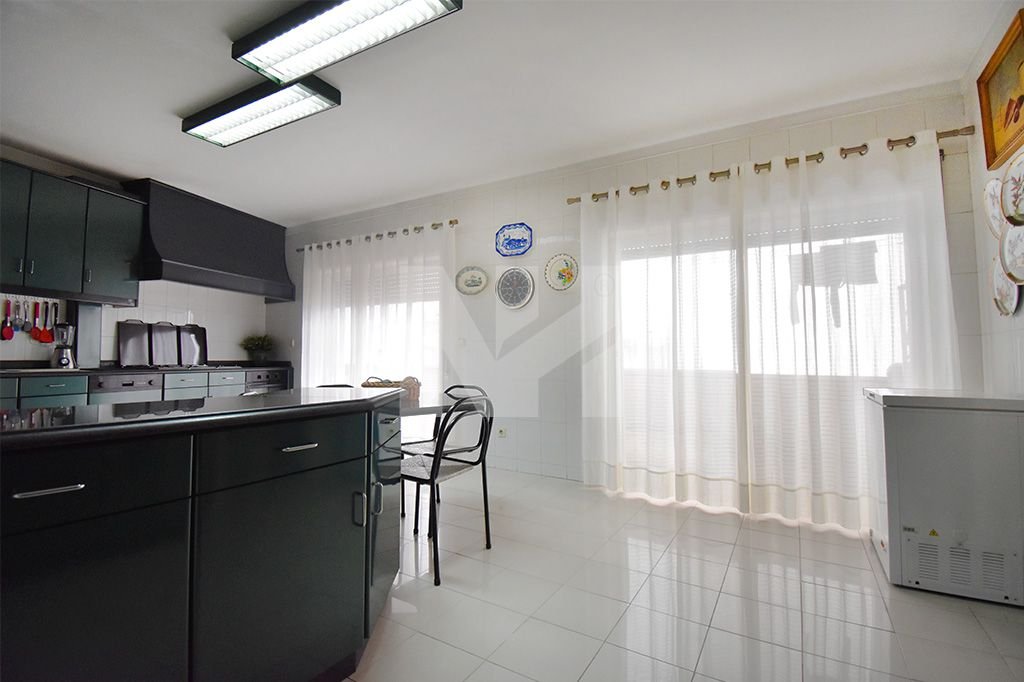 – Cozinha mobilada e totalmente equipada com Balcão e ilha, placa vitrocerâmica, placa de gás, Forno, Exaustor, Combinado, Máquina de lavar loiça, despensa, Lavandaria com Máquina de lavar roupa com acesso a uma varanda marquisada;