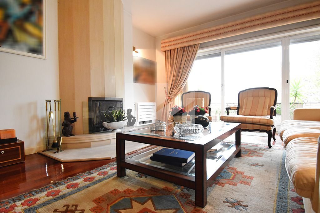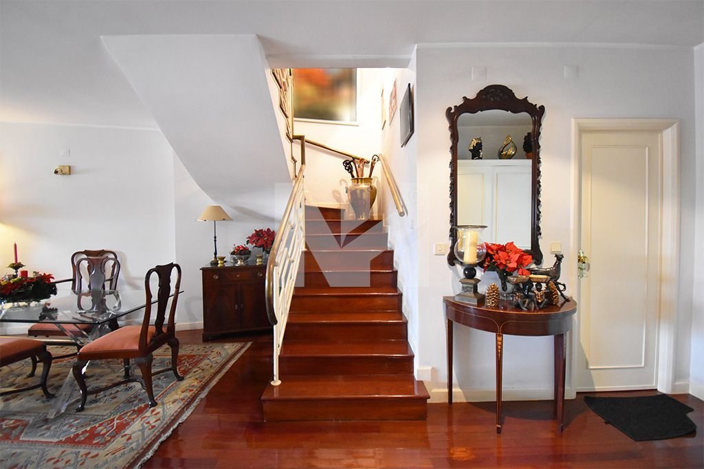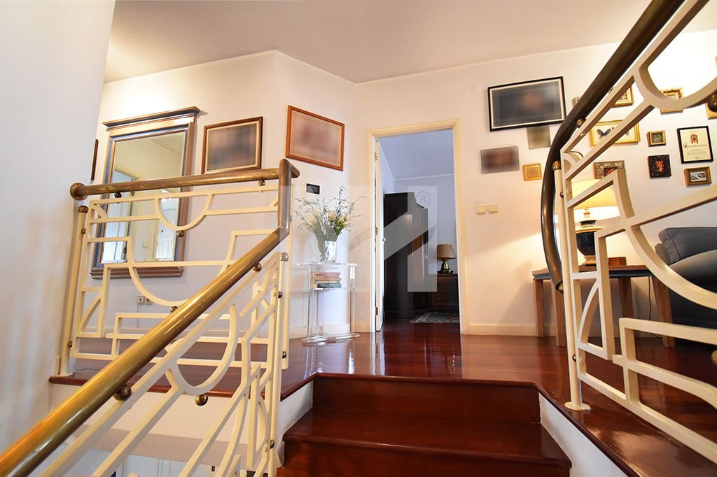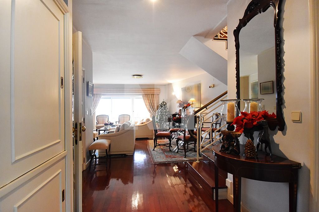 O apartamento T4 duplex em venda está apetrechado com 2 garagens fechadas com 40 m2, ar condicionado em todas as divisões, sala com lareira e recuperador de calor e 2 elevadores.