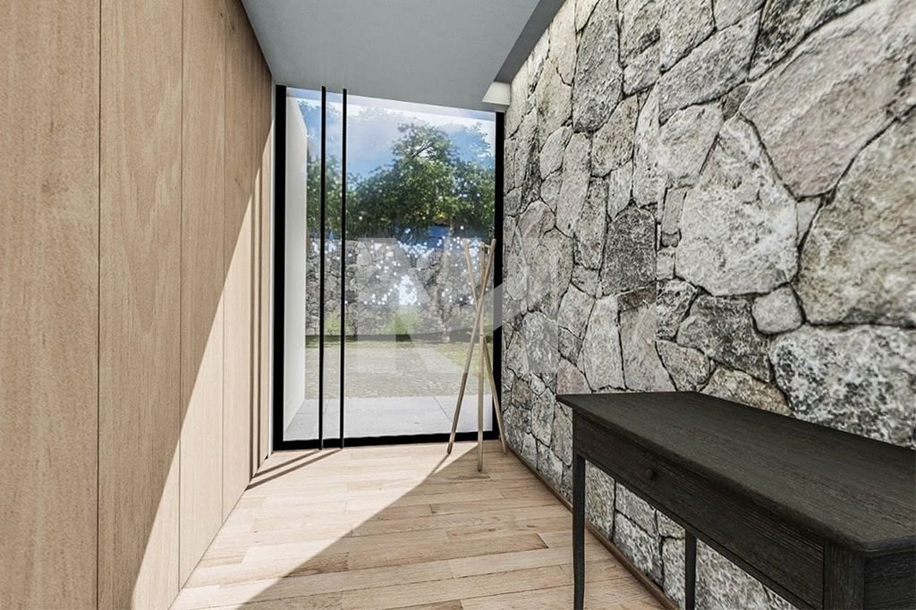 O terreno em venda, na parcela urbana, com uma área total de 1.207 m2, possibilita a construção de uma moradia de quatro frentes, com uma área total de implantação de 222,75 m2 e uma área total de construção de 406,30 m2.
